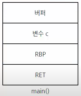 C언어는 main함수부터 실행하기 되는데 main함수를 불러오게 되면 가장 아래에 RET(return address)가 생성되는데, 특정한 함수가 끝나면 돌아갈 위치를 저장한다.