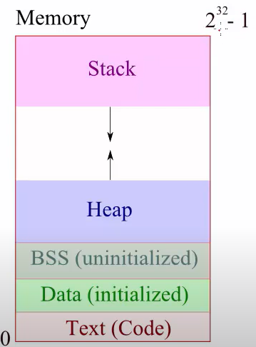 - (사진은 운영체제 32bit 기준의 메모리이다. 64bit의 메모리 크기는 2^64-1이다)