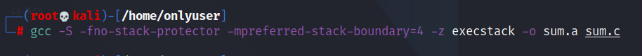 stack-boundary=4를 통해 64bit 운영체제 버전으로 컴파일할 수 있게한다. sum.c의 파일을 sum.a의 어셈블리어 코드로 바꿔줄 수 있게 한다.