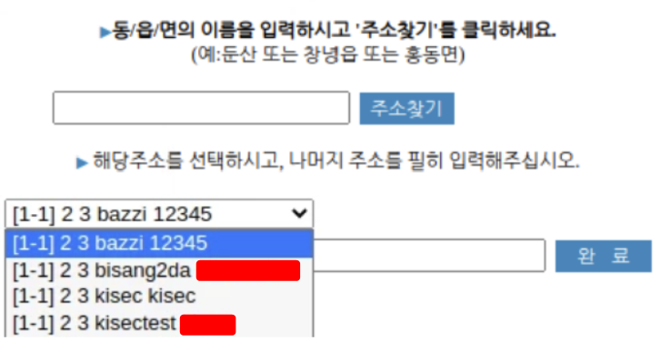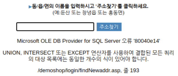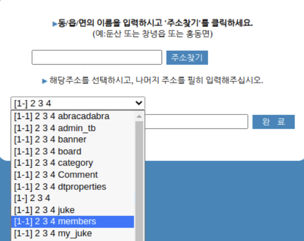 Error-Based 실습 때 사용한 홈페이지에서 회원가입 > 주소 찾기 창에서 실습을 진행한다.