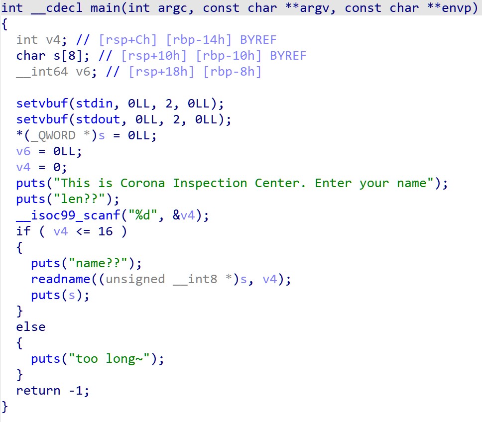 len : 16 이상일 경우 puts(too long~)과 함께 프로그램이 종료