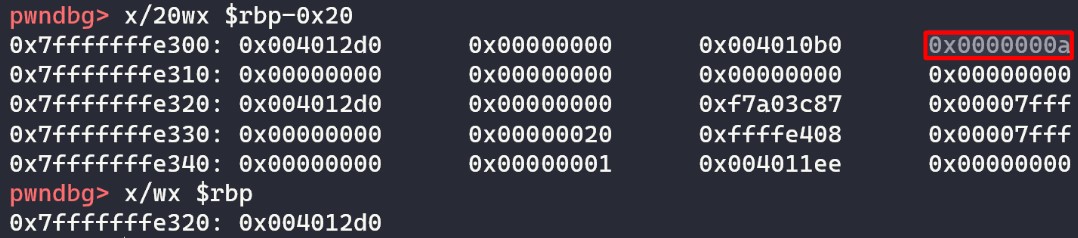 0x00000000004012aa <+188>: lea rax,[rbp-0x10]