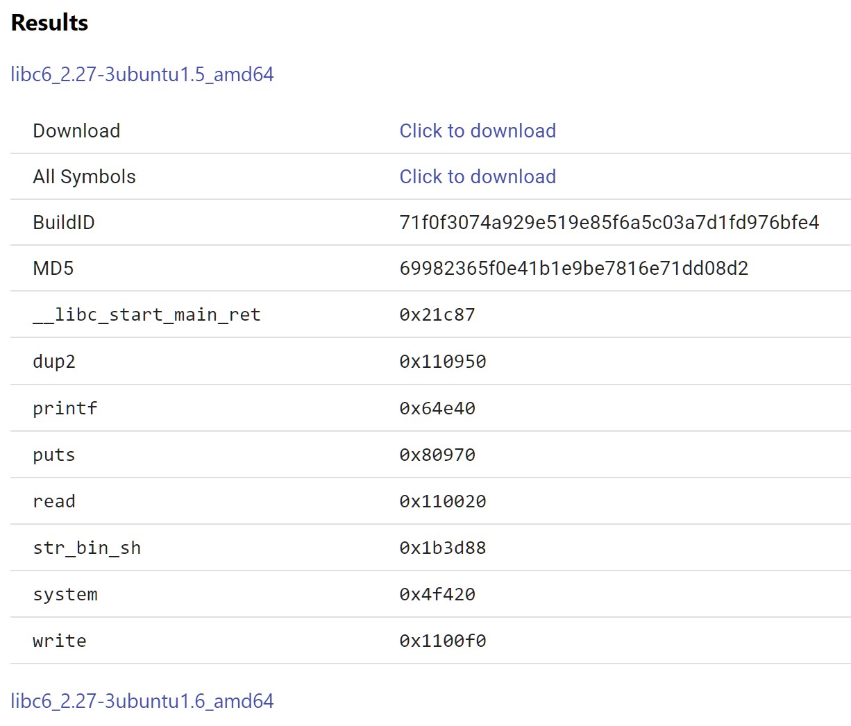 이렇게 나온 값을 하위 1.5바이트의 값을 넣고 FIND를 하게 된다면 아래처럼 해당 libc의 버전이 나오게 된다.