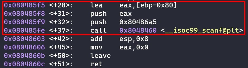 buf의 크기는 0x80로 128byte이지만, scanf("%141s", buf);로 총 141byte를 입력받기에 버퍼 오버플로우(BOF)가 발생할 수 있다.