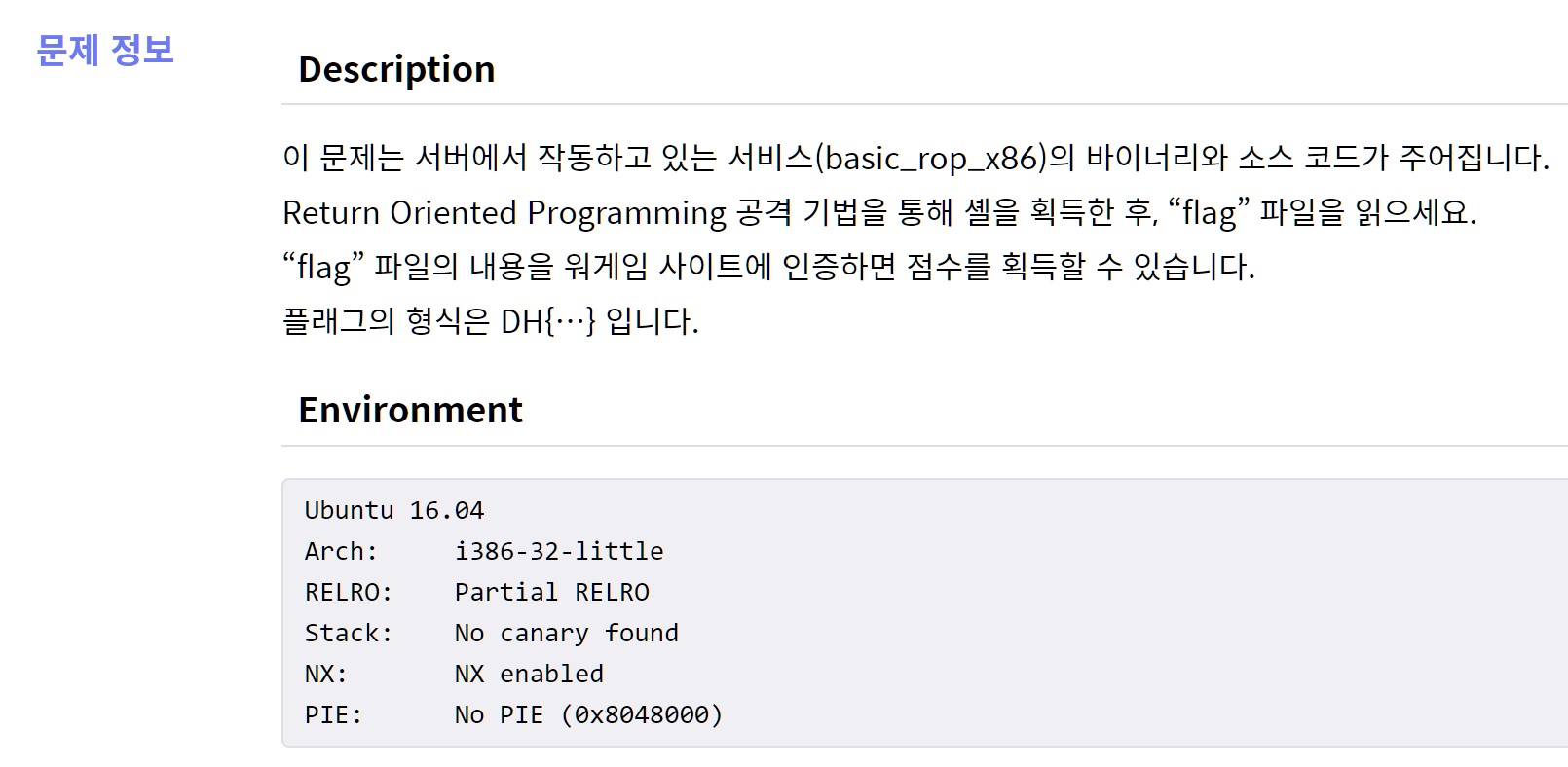 리턴 지향 프로그래밍 과정에 속한 문제이다. 따라서 해당 문제는 ROP로 진행하면 될 것이다.