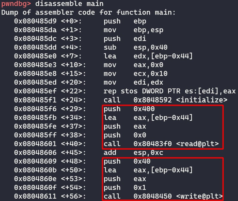 ret까지 dummy값으로 채우고 write함수를 이용하여 인자를 write@got를 넣는다면 GOT 출력이 된다.