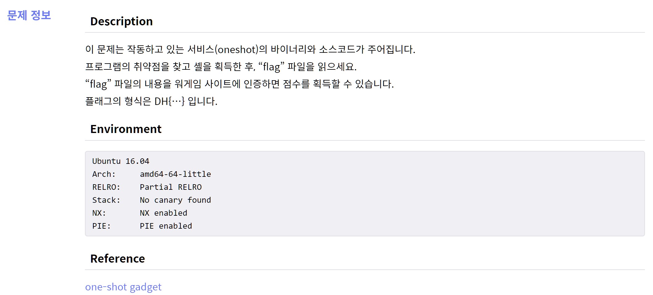 이 문제는 Hook Overwrite 로드맵에서 One-shot gadget을 활용하는 문제입니다.