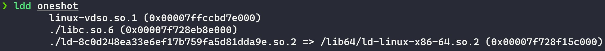 patchelf --set-interpreter ./ld-8c0d248ea33e6ef17b759fa5d81dda9e.so.2 ./oneshot