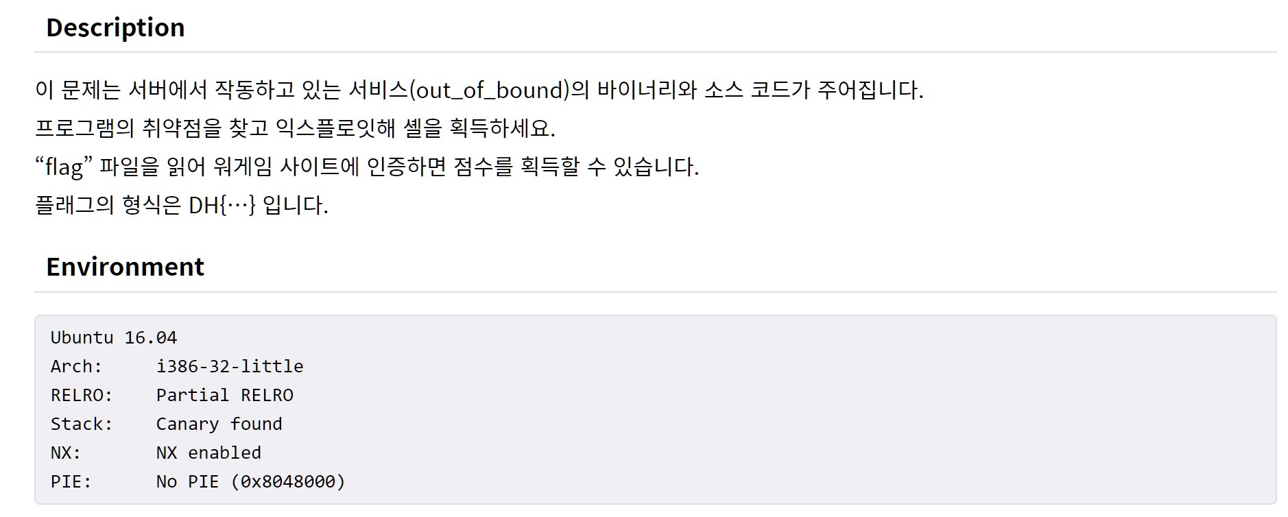 Out of Bound라는 커리큘럼이다. 이번 문제는 배열에 대한 접근 관련 인덱스 점검이 발생하지 않을 시 일어나는 취약점을 가지고 해당 문제를 풀이하게 될 것이다.
