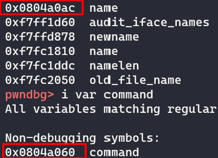 name과 command가 주를 이루고 있기에 해당 변수들의 메모리 주소를 확인해야한다.