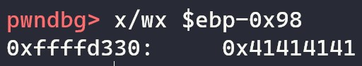 그렇다면 우리가 입력한 값이 [ebp-0x98]에 저장되므로, RET까지 얼만큼의 위치를 가지고 있는지 알아야한다.