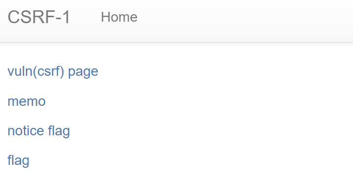 접속 시 vuln page, memo, notice flag, flag 총 4개의 링크가 있는 것을 알 수 있다.