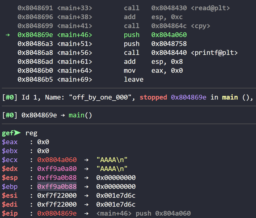 0x0804864d <+1>: mov ebp,esp