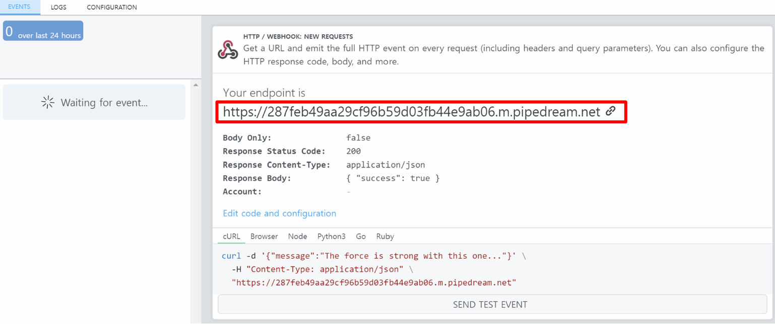 이렇게 이벤트 목적인 엔드포인트에 대한 URL이 생성된다.
