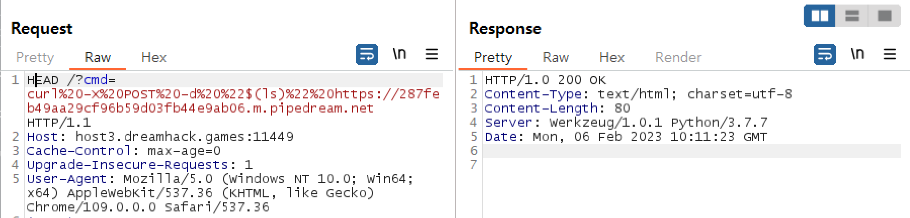 즉, HEAD를 사용하면 GET의 방식과 유사하기에 os.system(cmd) 부분을 실행시킬 수 있다.