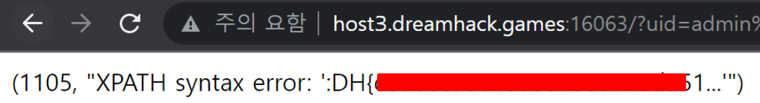 INSERT INTO user(uid, upw) values('admin', 'DH{**FLAG**}');