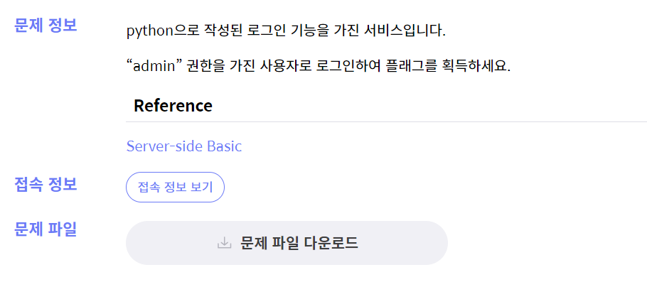 이번엔 로그인 서비스에 대해서 admin 권한의 계정으로 로그인하라는 것으로 어떠한 취약점을 기반으로 할 지에 대해서는 무지한 상태입니다.