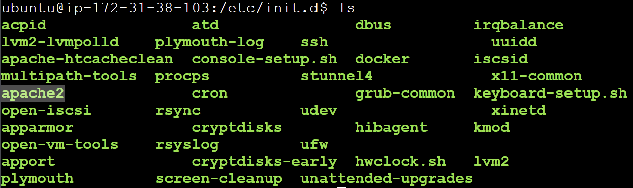 설치 후 /etc/init.d/ 디렉토리는 daemon 프로그램이 존재하는 디렉토리 apache2가 정상적으로 설치된 것을 확인할 수 있고,