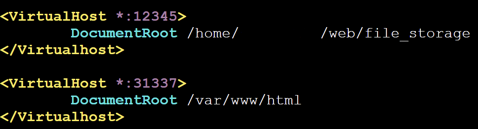 이후, 개별 포트에 대한 가상호스트 설정과 웹 루트 디렉터리와 로그 파일 위치 등을 설정해줍니다.