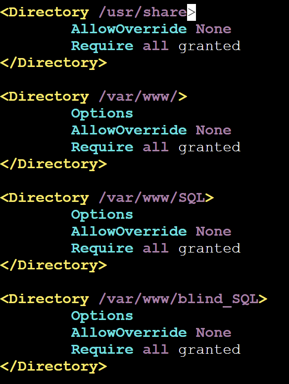 Options을 FollowSymLinks로 하게 된다면 디렉토리 인덱싱에 취약하므로 Options로 마무리 지어주시면 됩니다.