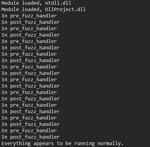 DynamoRIO/bin64 디렉토리에 가면 디버그 테스트한 로그 파일이 남는데 Everything appears to be running normally.가 있다면 성공적으로 작성한 것을 의미합니다.