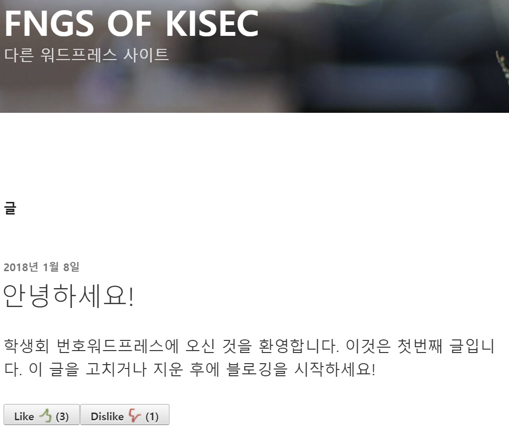 Active Scanning(wpscan)을 통해 dev.fngs.kr에서 like-dislike-counter 플러그인을 사용하는 것을 알 수 있다. 직접 들어가서 표면 상에서 드러나는지 확인해본다.