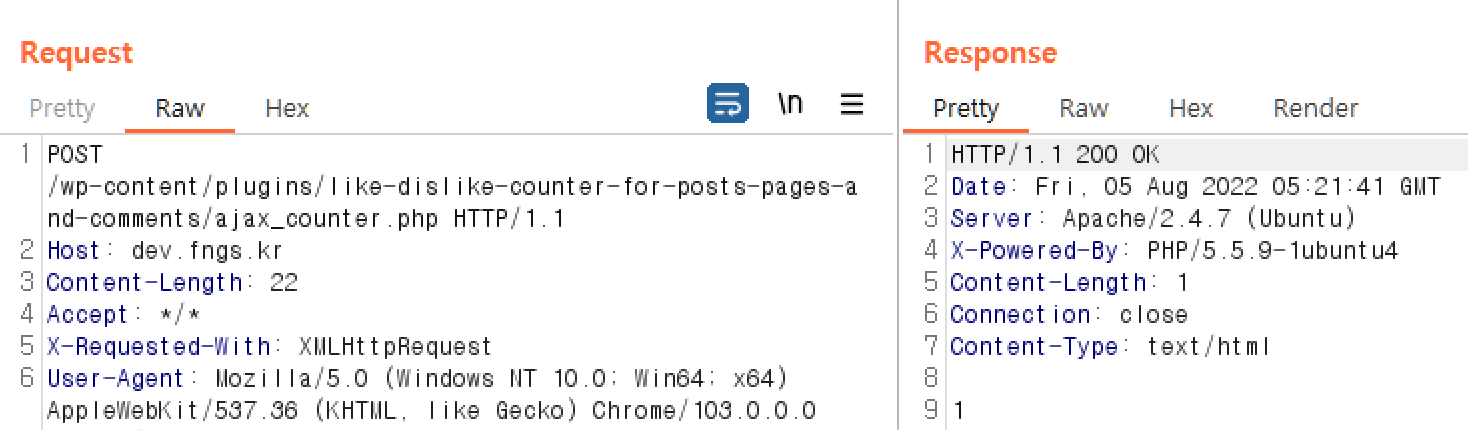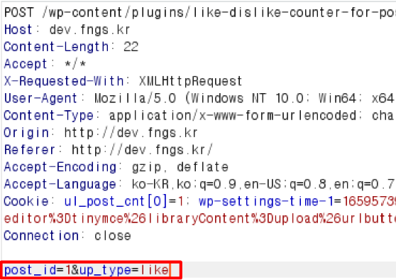 또한, like-dislike-counter 플러그인을 사용하는 것을 알 수 있었기에 해당 플러그인에 SQL injection을 시도할 것이다.