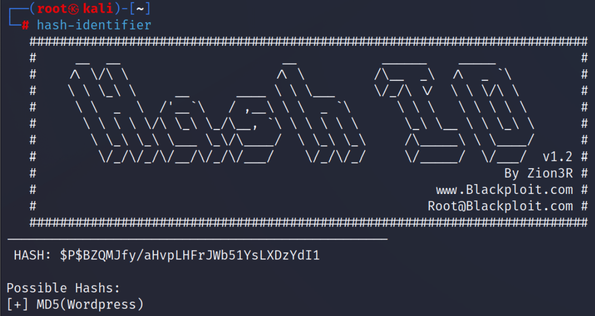 echo '$P$BZQMJfy/aHvpLHFrJWb51YsLXDzYdI1' > passwd.txt