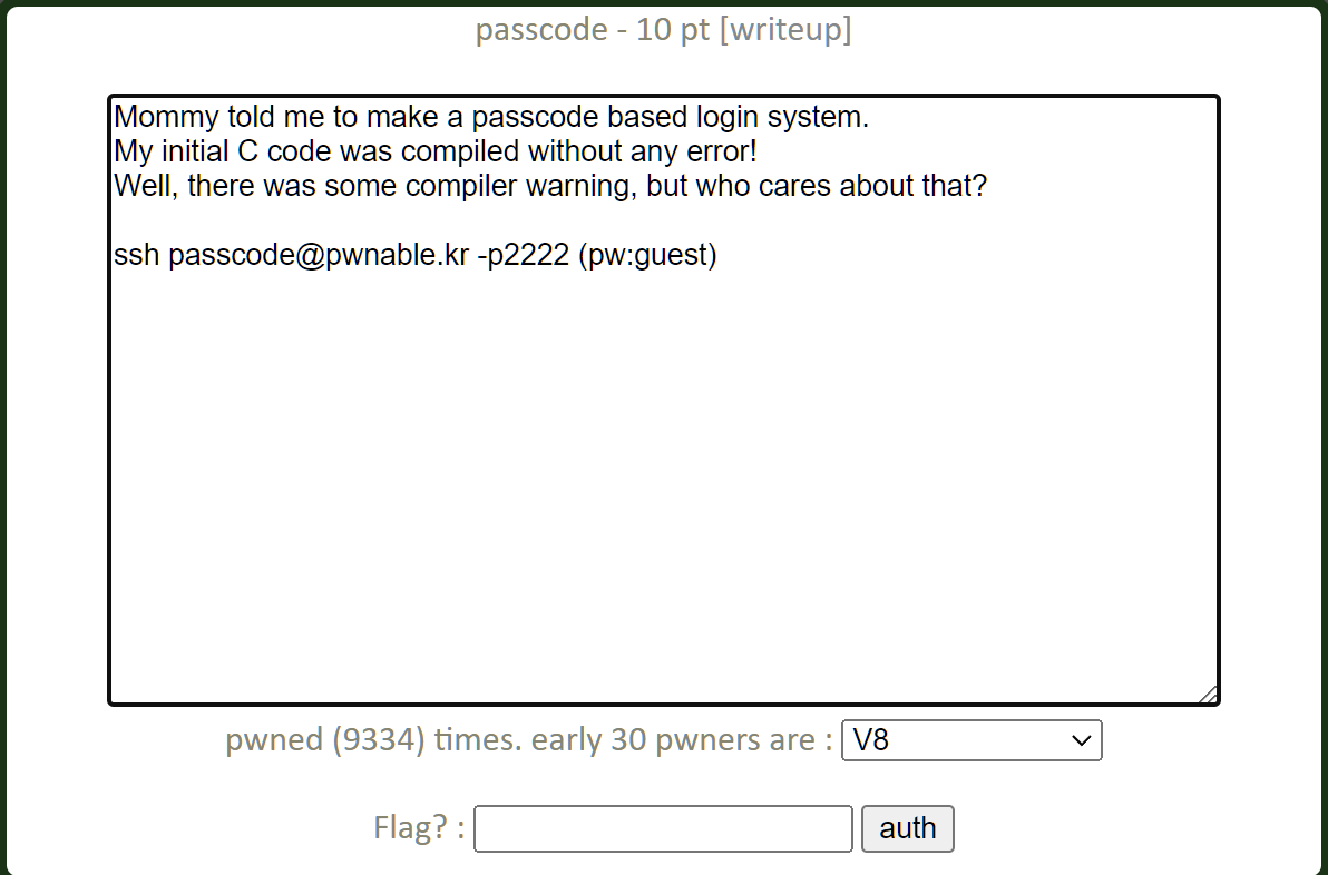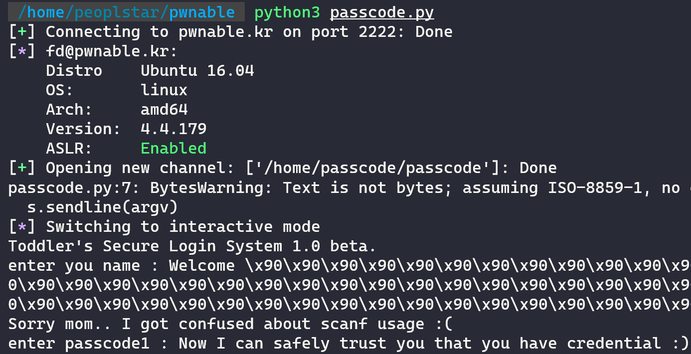 p = ssh("passcode","pwnable.kr",2222,"guest")