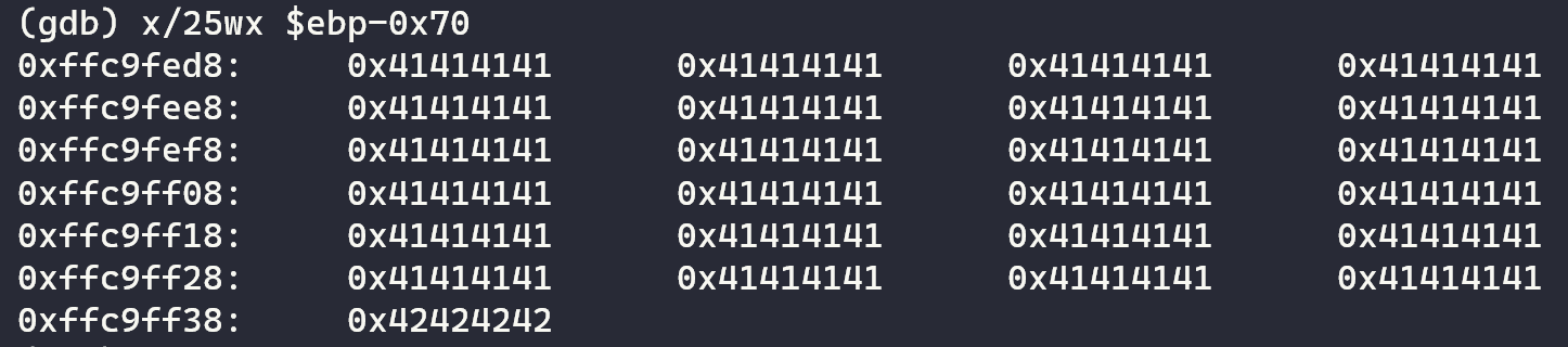 name[100]에 잘 들어가 있는 것을 확인 할 수 있다.name[96]부터 name[99]까지는 ‘B’가 들어가 있다.