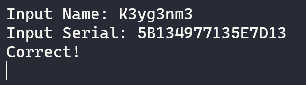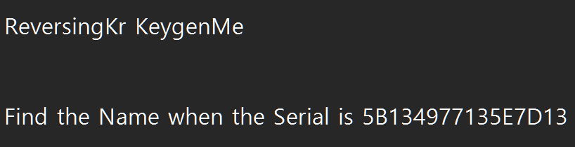 파일을 실행하면 Name과 Serial을 입력하는게 나온다. 이렇게 보면 옳은 Name과 Serial을 찾아야 할 것 같은 느낌이 들 것이다.
