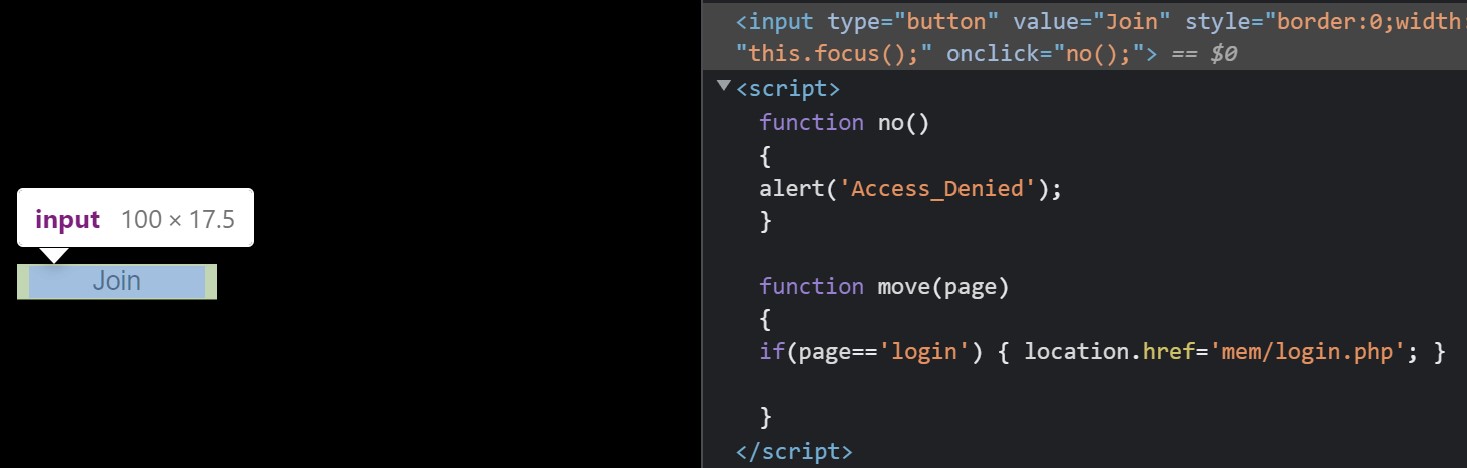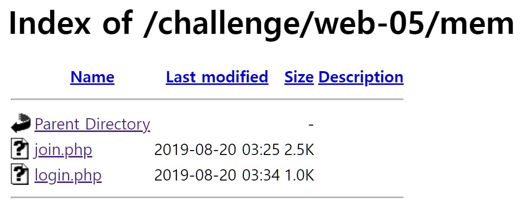 우리가 접근하지 못했던 join.php와 SQLi을 실패한 login.php가 보인다. 이렇게 디렉토리 인덱싱을 통해 숨겨져 있거나 접근이 불가한 곳을 접근할 수 있다. join.php를 접근하여 문제를 확인해본다.