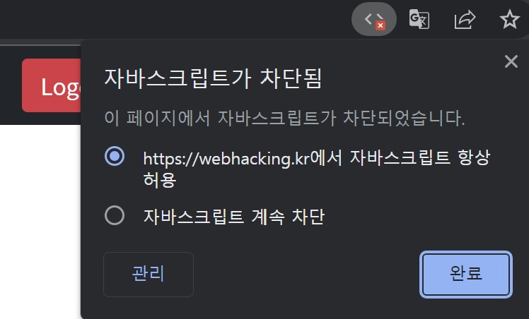 자바스크립트 계속 차단을 체크하고 다시 Level 15로 들어가본다.