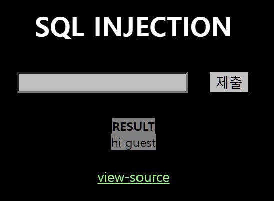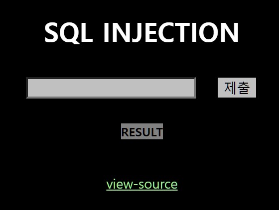 SQL INJECTION이란 타이틀과 우리가 입력한 값을 제출하는 form이 존재하며 결과 값을 출력해주는 것과 같은 RESULT가 존재한다.